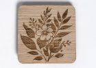 Sada dvou dřevěných podtácků z dubového dřeva, každý s jiným gravírovaným květinovým motivem. Podtácky jsou pevné, příjemné na dotek a vhodné pro každodenní použití.