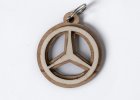 Dřevěná klíčenka s motivem značky Mercedes v jednoduchém provedení. Vyrobena je z kombinace bukové a topolové překližky.